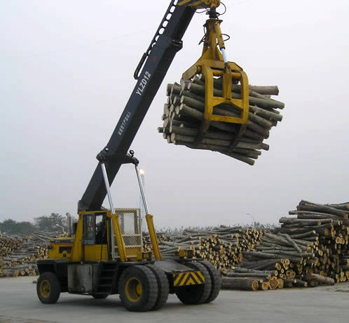 適用工況:大型造紙、人造板、木業(yè)、車站貨場等物流場所對木材、散料的裝卸、堆垛、喂料作業(yè)。