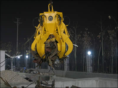可滿(mǎn)足客戶(hù)的特殊需求,專(zhuān)門(mén)設(shè)計(jì)制造“機(jī)電液一體式”抓具,主要適合抓取散料 、木材、廢紙(捆)、礦石、廢鋼鐵等物料 , 廣泛應(yīng)用于碼頭、鋼廠、垃圾焚燒處理工廠等場(chǎng)合作業(yè) , 可配合行吊、 港機(jī)等各類(lèi)型的抓斗起重機(jī)使用。 抓斗自帶液壓系統(tǒng) , 液壓系統(tǒng)主要元件采用國(guó)外知名品牌 , 具有自重輕、抓取比大、效率高、自鎖性能好,使用和安裝方便等特點(diǎn)。
